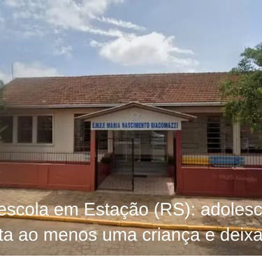 Caso aconteceu na Escola Municipal Maria Nascimento Giacomazzi; autor das agressões foi detido Uma criança morreu e pelo menos outras três pessoas ficaram feridas após um ataque em uma escola municipal de Estação, cidade do norte do Rio Grande do Sul. O autor das agressões é um adolescente que teria pedido para entrar no local para entregar um currículo. Ele foi detido em seguida. Em entrevista à Rádio Gaúcha, o prefeito da cidade, Geverson Zimmermann, afirmou que duas crianças foram atendidas com ferimentos leves, além de uma professora, também golpeada. A terceira criança, porém, não resistiu e morreu após ser esfaqueada na região do tórax. Ela não teve a identidade divulgada, mas estudava no terceiro ano do ensino fundamental. O prefeito também informou que o agressor era um adolescente conhecido na comunidade e que passava por tratamento psicológico.