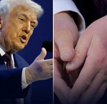 MANCHA ROXA VOLTA A APARECER NA MÃO DE TRUMP EM EVENTO INTERNACIONAL!
