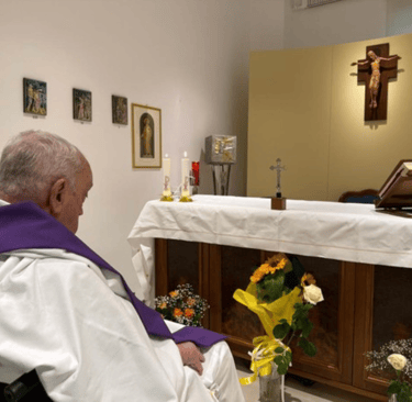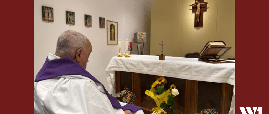 Vaticano divulga foto do Papa Francisco celebrando missa em hospital após um mês internado.