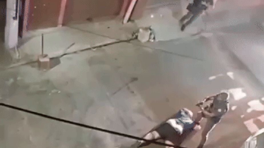 Após a primeira agressão, apontando a arma para o homem deitado de bruços, a policial ainda grita: "não se mexe, filho da puta".